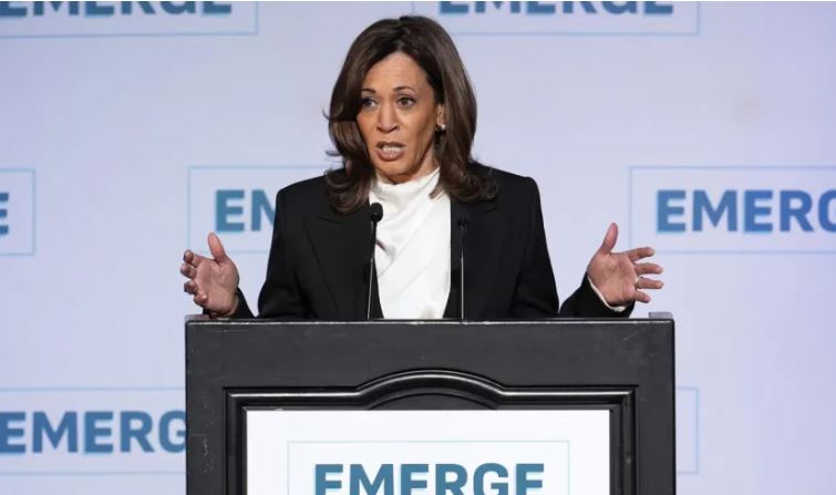 “Now I know tonight’s event happens to coincide with the 100 days after the inauguration, and I’ll leave it to others to give a full accounting of what has happened so far,” Harris said at the Emerge America event in San Francisco.