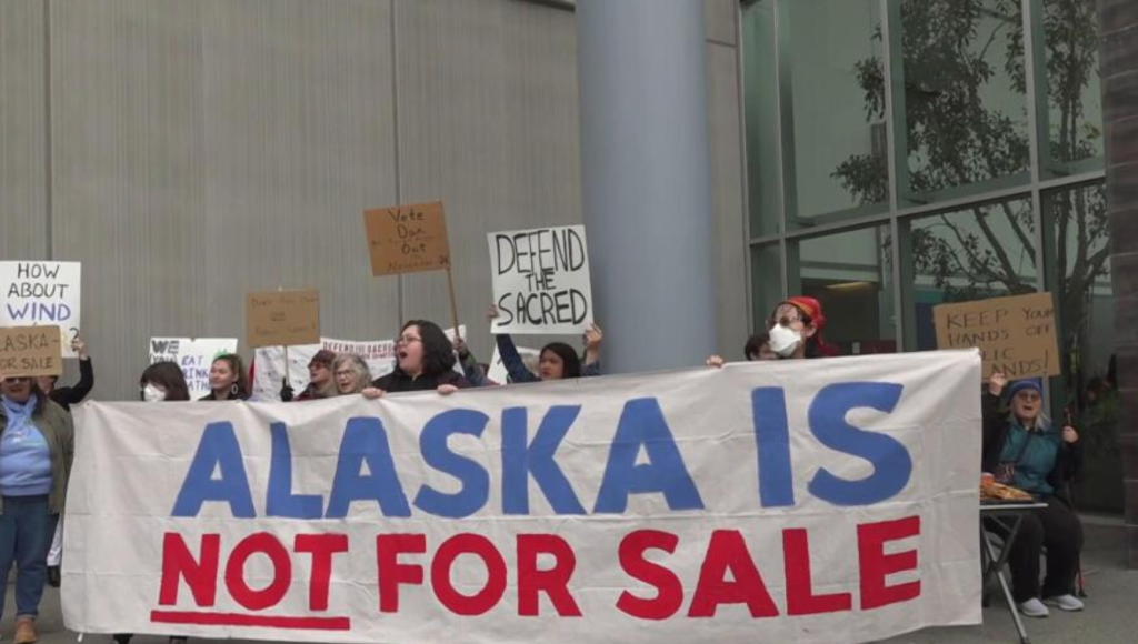 Several dozen protesters were outside Gov. Mike Dunleavy’s annual Alaska Sustainable Energy Conference in Anchorage, where U.S. Interior Secretary Doug Burgum, Energy Secretary Chris Wright and Environmental Protection Agency Administrator Lee Zeldin were featured speakers. The federal officials were continuing a multiday trip aimed at highlighting President Donald Trump’s push to expand oil and gas drilling, mining and logging in the state.