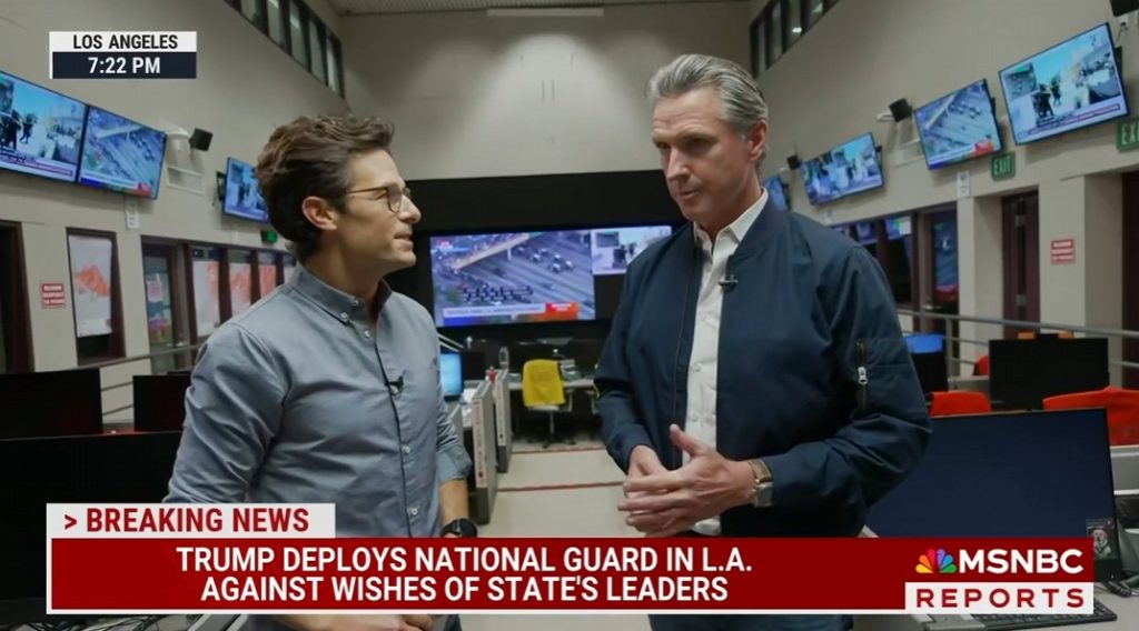 In an interview for MSNBC with NBC News’ Jacob Soboroff, Newsom called Homan’s bluff, urging him to “just get it over with” and move ahead with the arrest.