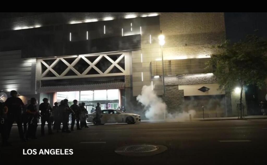 The protests began Friday after federal immigration raids arrested dozens of workers in Los Angeles. Protesters blocked a major freeway and set cars on fire over the weekend, and police responded with tear gas, rubber bullets and flash-bang grenades.