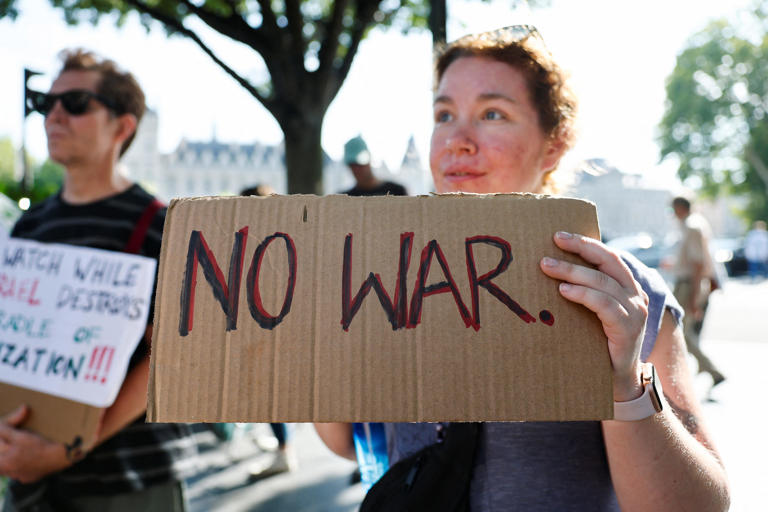 The protests, some organized in part by ANSWER (Act Now to Stop War and End Racism) Coalition, an anti-war group, call for Trump and Israeli Prime Minister Benjamin Netanyahu to stop the war on Iran.