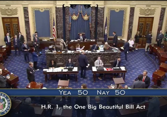 The outcome capped an unusually tense weekend of work at the Capitol, the president’s signature legislative priority teetering on the edge of approval or collapse. In the end that tally was 50-50, with Vice President JD Vance casting the tie-breaking vote.