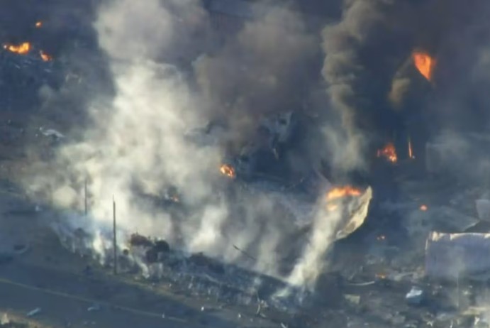 Helicopter video taken by NBC affiliate KCRA of Sacramento showed fires at the facility, including at least one building ablaze, and fireworks launching into the air and detonating.