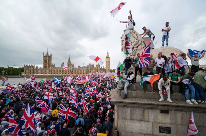 ——Demonstrators at the “Unite the Kingdom” rally Saturday.