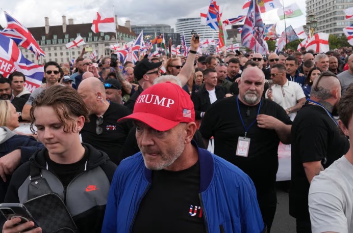 A far-right march led by Tommy Robinson, a convicted fraudster with a violent criminal record, drew more than 100,000 people to the streets of the capital Saturday. Elon Musk, formerly Trump’s right-hand man in the White House, called into the rally. He urged a “dissolution of Parliament” and told attendees that “you either fight back or you die,” in comments that were condemned by Starmer and others.