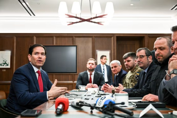 Rubio and special envoy Steve Witkoff met with a Ukrainian delegation headed by Rustem Umerov, secretary of Ukraine’s National Security and Defense Council. Also present was President Donald Trump’s son-in-law Jared Kushner, who does not hold an official U.S. government position but serves as an unofficial adviser.