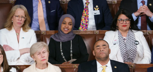 As Trump talked about illegal immigration and the border, Rep. Rashida Talib (D-Mich.) yelled at Trump, “You’re killing Americans.” Omar also yelled, “You have killed Americans.”