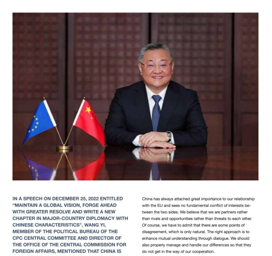 2023年3月28日,《外交世界》(Diplomatic World)杂志刊发了中国驻欧盟使团团长傅聪大使接受该杂志首席执行官迪特里希(Barbara Dietrich)的专访。以下是专访实录: