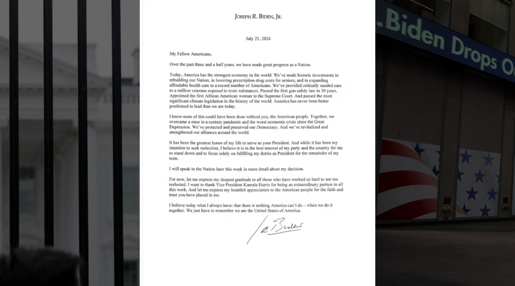 “While it has been my intention to seek reelection, I believe it is in the best interest of my party and the country for me to stand down and to focus solely on fulfilling my duties as President for the remainder of my term,” Biden wrote on X.