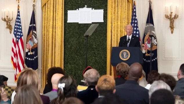 Biden also made an appeal to voters, citing book bans as an example of threats to the arts and humanities.